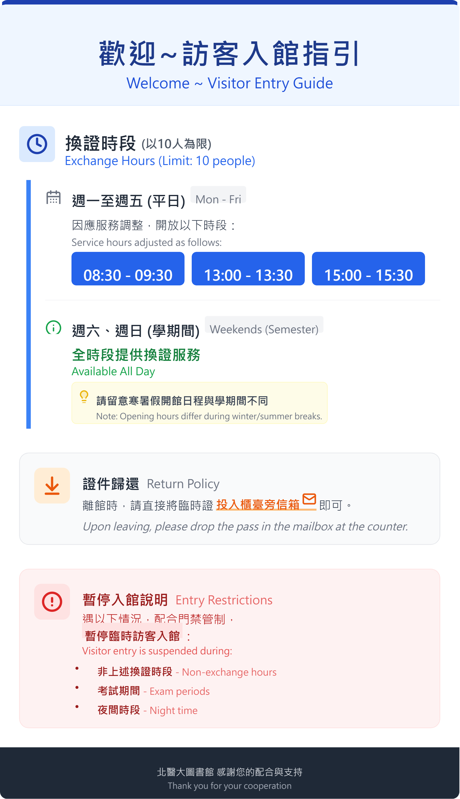 2026/2/01起無人櫃台自助服務時段調整為自助服務時段將調整為平日 9:30 至閉館前 1 小時